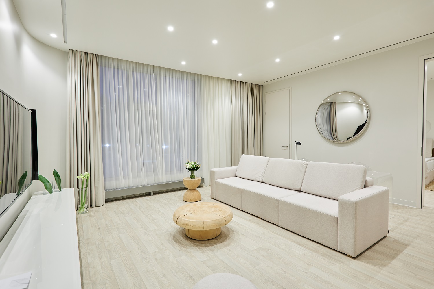Оттенок Дуб Песочный идеально подходит для небольших комнат — такие молочные тона прекрасно расширяют пространство, добавляя комнате света и тепла.
